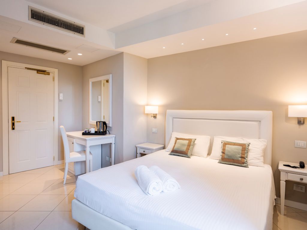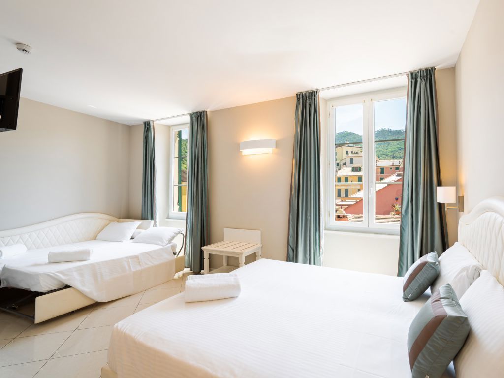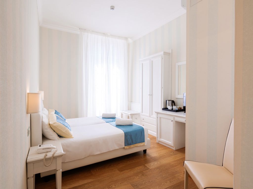Neu renovierte Zimmer in einem einfachen, romantischen Stil. Der Ausblick ändert sich je nach dem, auf welcher Seite sich die Zimmer befinden.